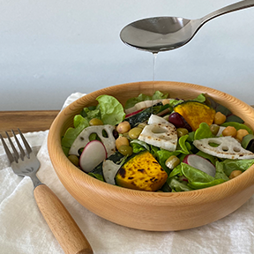 酸化に強いので加熱調理でき開封後も常温で保存できるので、複数の油を使い分ける必要がなく手軽にお使いいただけます。