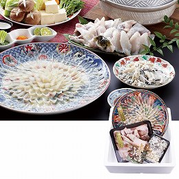 山賀 天然ふぐさしみ・鍋セット 天然とらふぐさしみ140g、天然とらふぐちり400g、天然とらふぐ皮さし100g、天然とらふぐ干しヒレ5枚