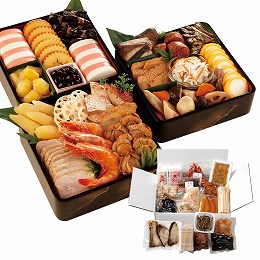 創健社の和風お重セットと、単品商品の人気の品を中心に選び、バランスよく詰め合わせた少人数でお祝い頂けるセットです。2名様用。※重箱寸法:23.6×23.6×7.3cm