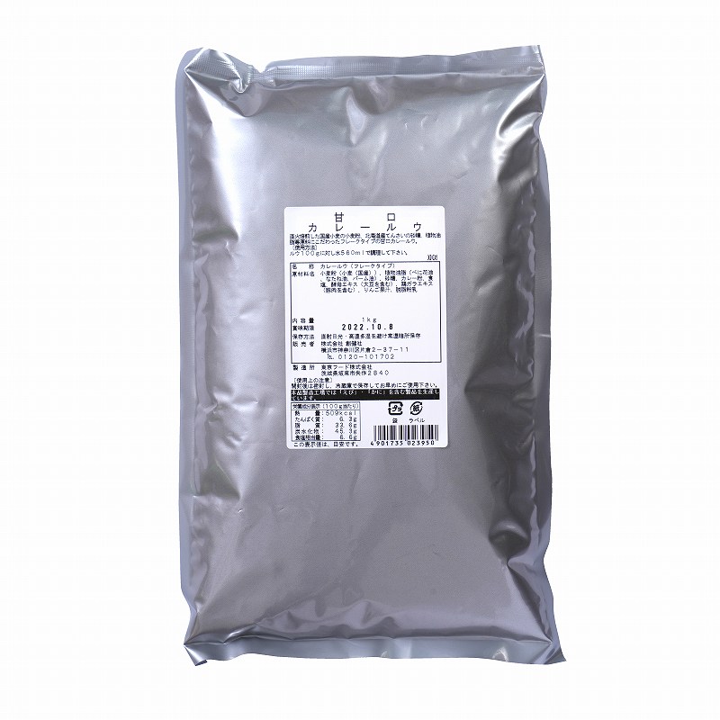 直火焙煎した国内産小麦粉、北海道産てんさい糖、植物油脂等原料にこだわったフレークタイプの業務用カレールゥです。(甘口・40〜50皿分)