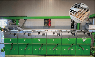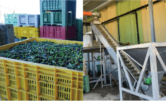 集められたオリーブの実は、四角いボックス型コンテナに入れられ2022年に新設された自社工場に運び込まれます。