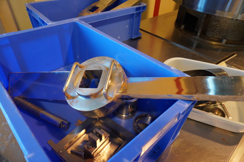 実はこの工場では、「1回混ぜるごとに、機械をすべて分解して洗う」というルールを徹底しているんです。