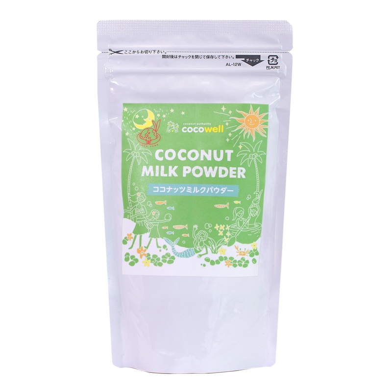 粉末状のココナッツミルク。お湯で溶けば液体のココナッツミルクに。水分量を調整し一般的なココナッツミルクから濃厚なココナッツクリームまでお好みに。粉末なので「使いたい時に使いたい分だけ」使えて便利です。