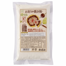 国産原料100%の原料のみで作った純植物性のお好み焼きミックスです。小麦澱粉、山芋粉、昆布粉末を加えました。動物性原料、食塩不使用。直径約15cm4枚分。