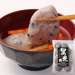北海道産特別栽培の「もち米」を使用した搗きたて丸餅に、北海道産の特別栽培黒米を入れ急速冷凍。自然解凍するだけで柔らかくコシのあるお餅に。