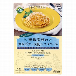 国産大豆の豆乳をベースにコーンの甘みとねりごまのコクを加えクリーミーに仕上げました。植物素材のカルボナーラ風パスタソースです。
