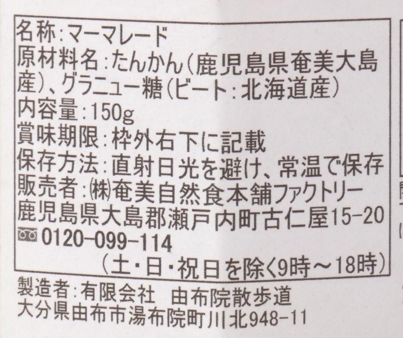 奄美自然食本舗ファクトリー 奄美完熟たんかんマーマレード 150g