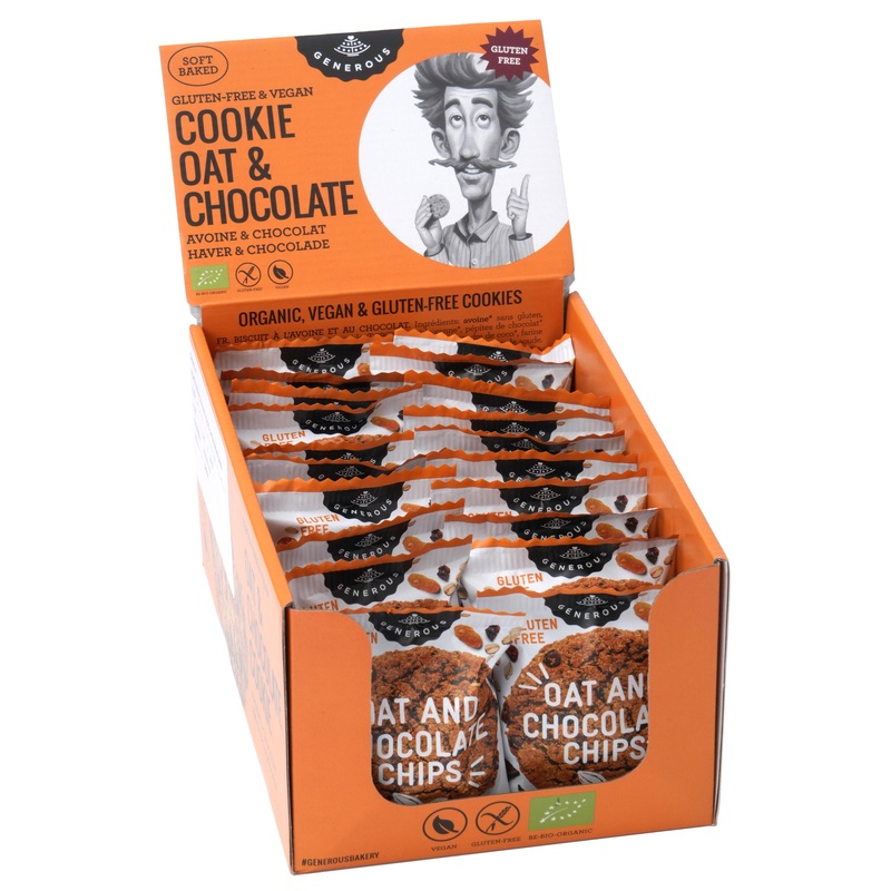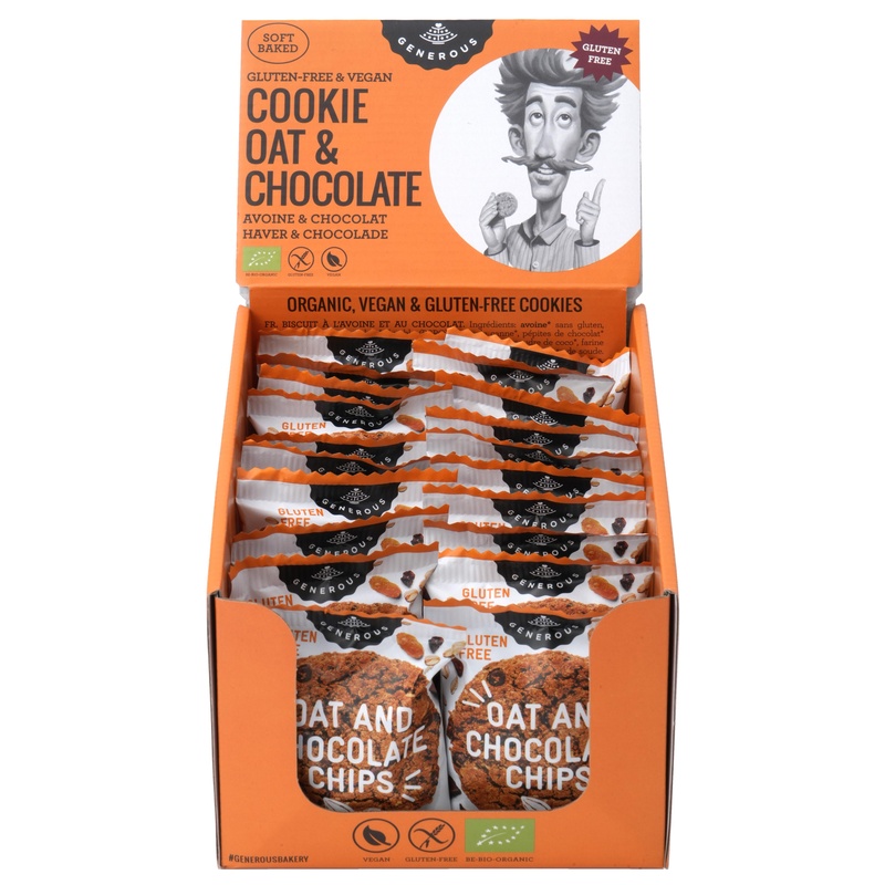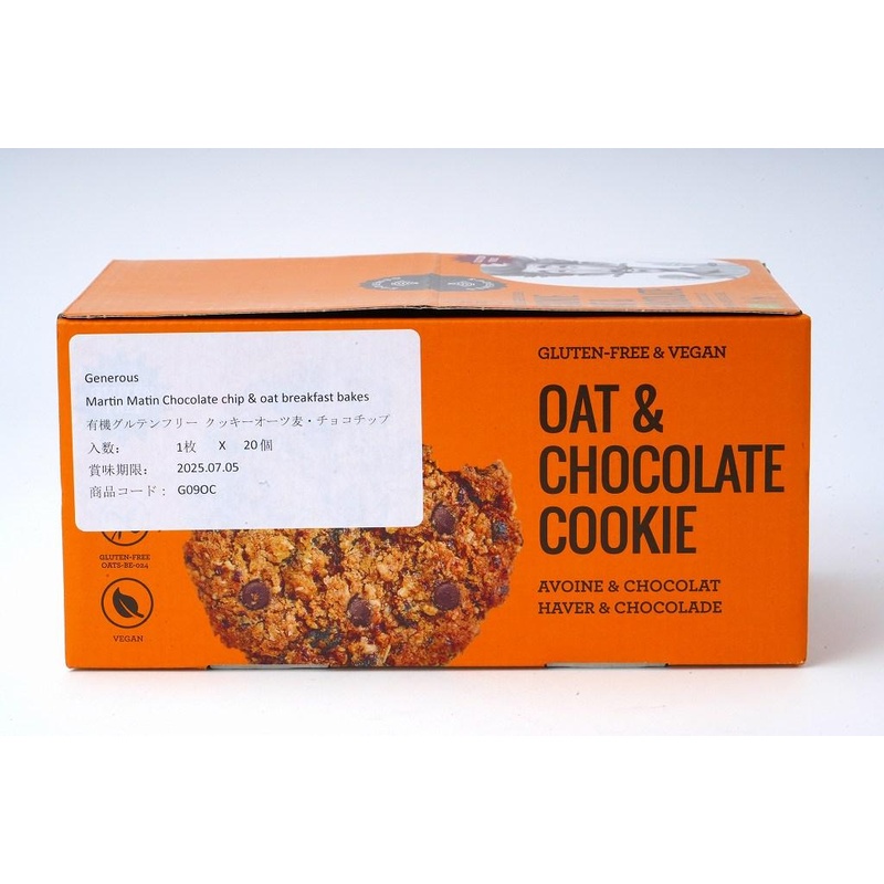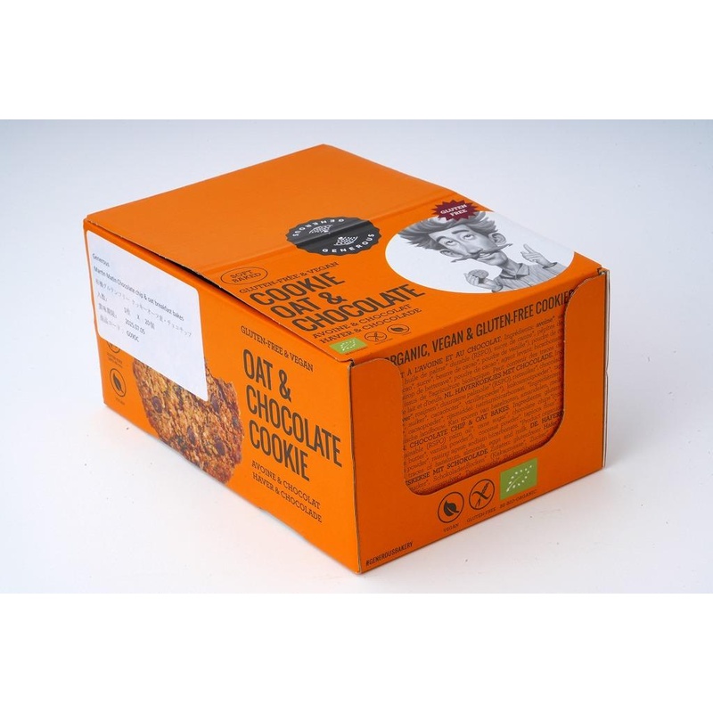 有機オーツ麦にチョコチップとレーズンを加え、動物性原料を使わずに焼き上げたヴィーガン&グルテンフリ―クッキー。ブレックファーストベイクとして忙しい朝の栄養補給、おやつにどうぞ。