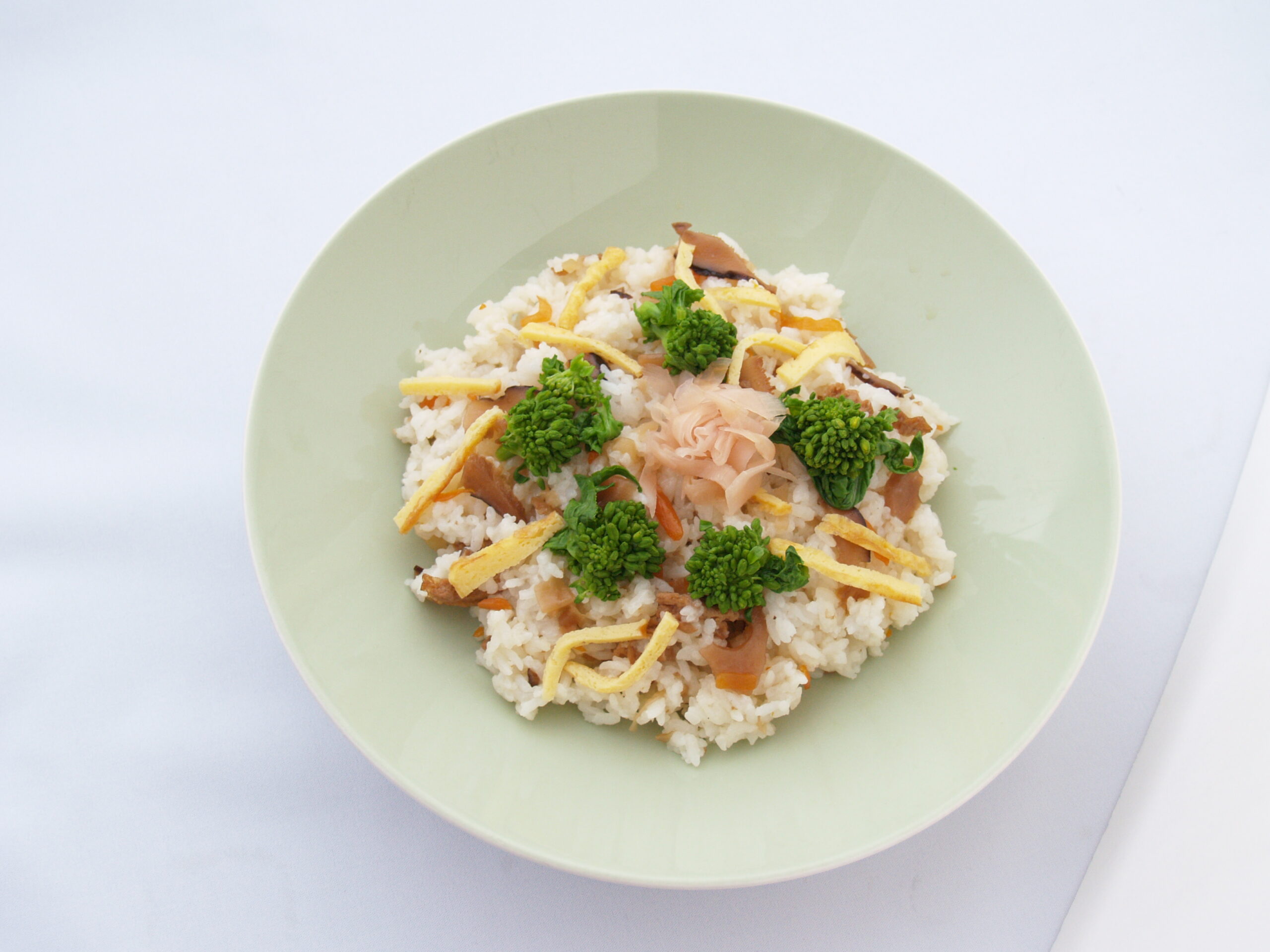 ご飯を炊いてまぜるだけ。旬の野菜を添えて -