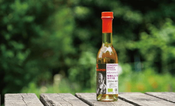 この白ぶどう酢は、長年に渡って希少なトラディツィオナーレ(木樽で長期熟成する伝統的な製法のバルサミコ酢)を作り続け、2024年よりジロロモーニのバルサミコ酢を作っているGuerzoni社が手がけています。この白ぶどう酢の製造においても、そこで培った技術が存分に活かされています。