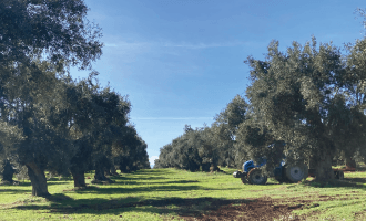 オリーブ畑は、どこも大変よく手入れがなされており、土もふかふかしています。 そして、なんといっても驚くのは、200年を超える古木が数多くあることです。 幹がとても太く枝葉を大きく開き元気一杯に夏の日差しを受けています。 マリオさんの説明によるとオリーブの木は現在分かっている限りでも樹齢数百年のものが幾つも存在しており、今後その寿命がどれほど長く続くのかは分かっていないとのことです。 「古木はしっかりと根を張っており、それ程手を掛けなくても強く生きて行く事が出来ますが、幼い木には十分な手間をかける必要があります。しかし私たち生産者にとってはその成長こそが何よりもの楽しみなのです。」と語ってくれました。