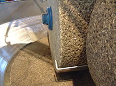 ペースト状になったオリーブはパイプを通じて冷却機能が付いた混煉機に運ばれ、ゆっくりと時間をかけて穏やかにすり潰したり練ったりして混合・攪拌していきます。低温(30℃以下)で混錬する事によって酸化を防ぎ、風味のより豊かなオリーブオイルを作る事が出来ます。