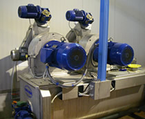 投入されたオリーブの実は、初めに風力選別機で枝、葉などの夾雑物を除去した後に水で洗浄されます。そしてクラッシャー(破砕機)でオリーブの実を種ごと破砕しペースト状にしていきます。