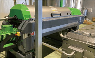 次に水平に回転するデカンター(遠心分離機)で、オイルから搾りかすと水分を除去します。こうして出来上がったオイルは、ステンレスタンクに入れて貯蔵されますが、タンク内には酸化を防ぐ為に窒素が充填されます。