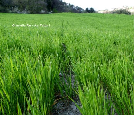グラツィエッラ・ラの生産の難しさとその希少性 グラツィエッラ・ラは、品種改良を重ねて背丈が低くなり生産効率が良くなった一般的なデュラム小麦と比べ、天候被害を受け易い品種です。畑10アール当たり150~200kgと収穫量自体も少ないため、栽培には多くの労力とコストを必要とします。