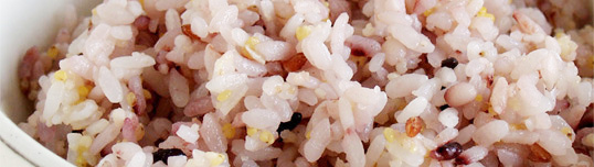 主食はからだの大本となるもの。何を選ぶかはとても大切です。生命力が強く、栄養価値の高い玄米をぜひ、主食に取り入れたいものです。玄米に抵抗があるという時は、胚芽米、分づき米(三分、五分、七分)を利用するのがいいでしょう。そして、これらにさまざまな雑穀を加えた「雑穀ごはん」で、バランスのとれた栄養たっぷりの主食を毎日、食べるのが健康の基本です。また、近年急速に普及してきた発芽玄米もお薦めします。玄米よりも食べやすくて、食味も良く、ギャバ(γ-アミノ酪酸)、IP-6(フィチン酸・抗酸化力を持つ)などが、玄米より増加している優れものです。一般的には、発芽玄米1に対して白米2の割合で炊飯して食べられています。なお、胃の消化機能が未成熟な幼児には、玄米は控え、胚芽米や分づき米、発芽玄米、雑穀ごはんがいいでしょう。