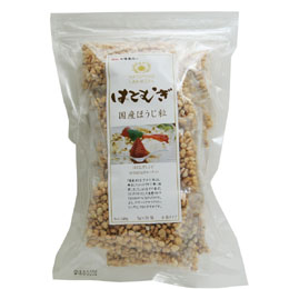 殻を取り除いたはとむぎの粒を焙煎しました。香ばしくそのままポリポリとお茶うけや、お子様のおやつにお召し上がりいただけます。シリアル風にも。