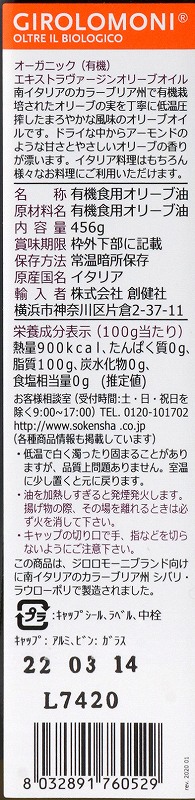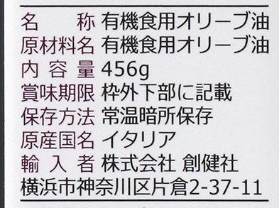 創健社 ジロロモーニ 有機エキストラヴァージン オリーブオイル 456g(500ml)