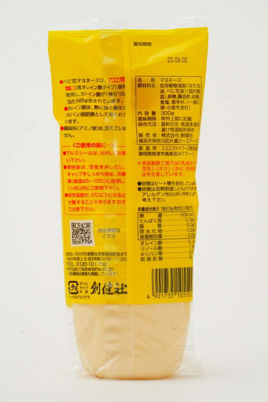 圧搾製法のべに花一番(高オレイン酸タイプ)を使用。醸造酢など自然な素材のみ使用した軽い風味のマヨネーズ。あっさり風味がフレッシュな野菜の味をひきたてます。