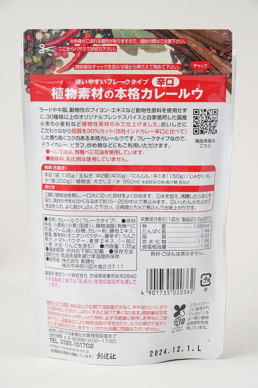 創健社 植物素材の本格カレールウ 辛口(フレーク) 135g