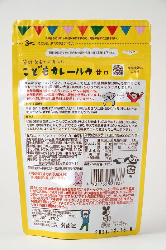 創健社 管理栄養士が考えた こどもカレールウ 甘口(フレーク) 110g