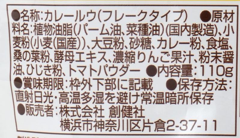 植物油脂(パーム油、菜種油)(国内製造)、小麦粉(小麦(国産))、大豆粉、砂糖、カレー粉、食塩、桑の葉粉、酵母エキス、りんご果汁、粉末醤油、ひじき粉、トマトパウダー