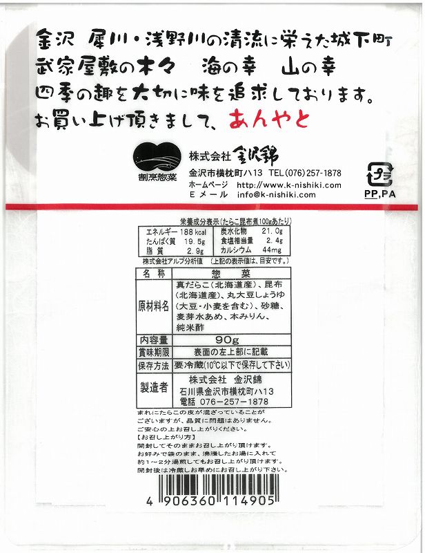 金沢錦 たらこ昆布煮 90g