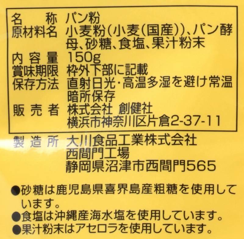 創健社 国産小麦の小麦粉100%使用パン粉 150g