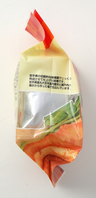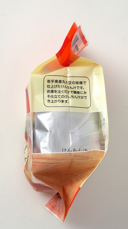 岩手県産丸大豆の味噌「みちのく味噌」で仕上げた野菜いろいろ具だくさんのけんちん汁。お湯を注ぐだけで簡単にみそ仕立てのけんちん汁ができ上がります。フリーズドライタイプ。