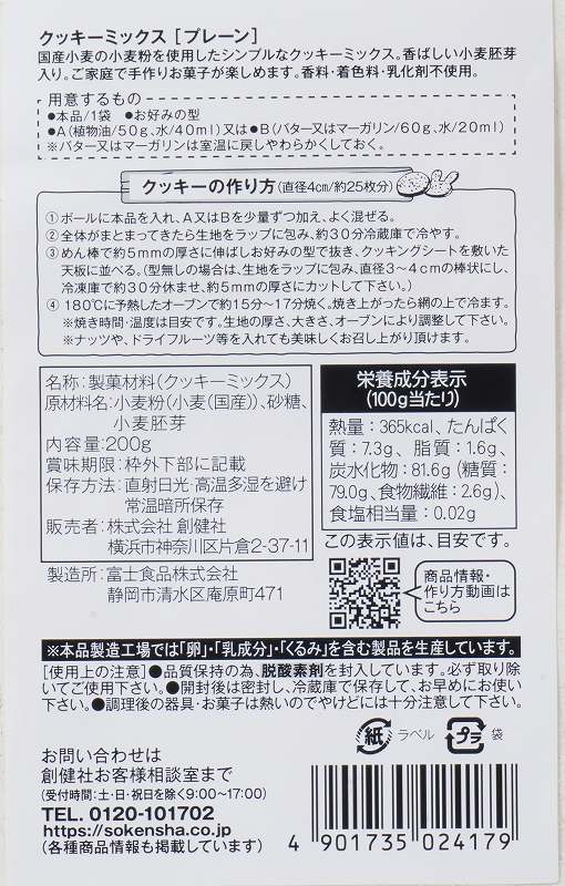 創健社 クッキーミックス(プレーン) 200g