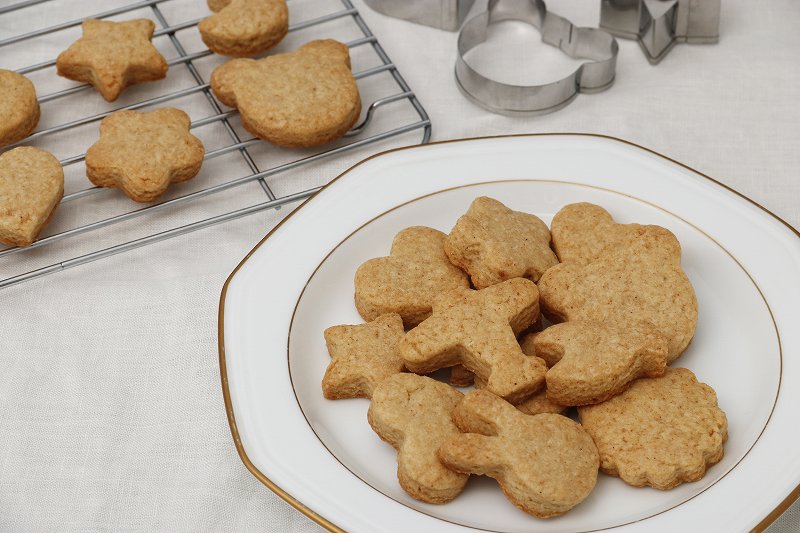 国産小麦の小麦粉を使用したシンプルなクッキーミックス。香ばしい小麦胚芽入り。ご家庭で手作りお菓子が楽しめます。直径4cm約25枚分。