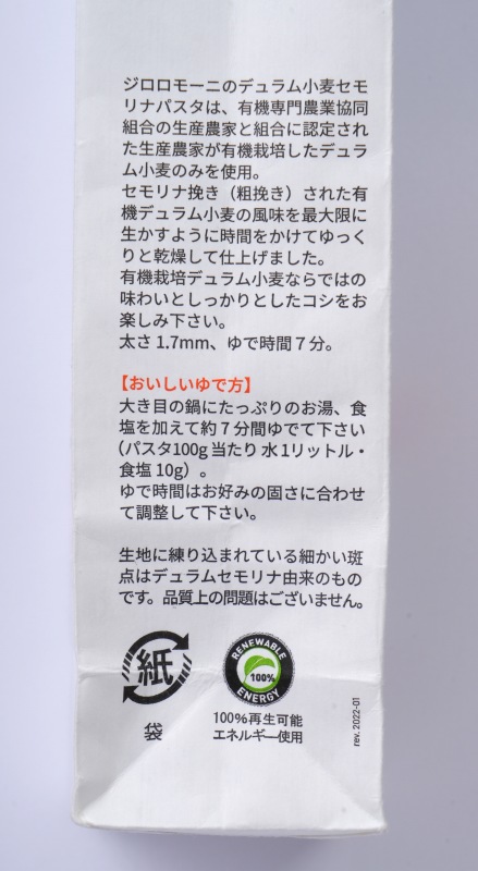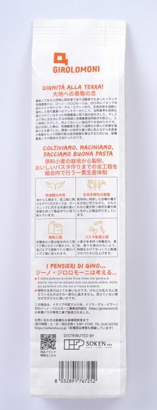 ○イタリア有機農業の父、ジーノ・ジロロモーニが設立したジロロモーニ農業協同組合と、その組合に認定された生産農家が栽培した有機栽培デュラム小麦のみを使用。