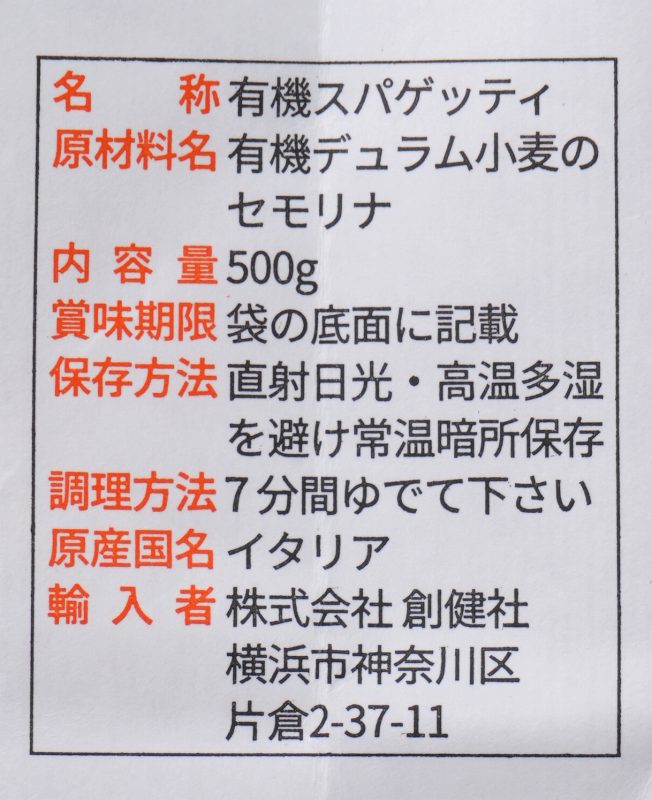 創健社 ジロロモーニ デュラム小麦 有機スパゲッティ 500g