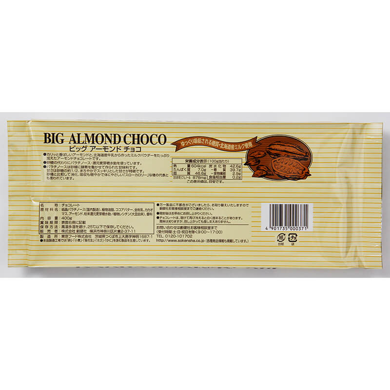 〇アーモンドを粒のまま入れたビッグサイズ(400グラム、縦11.5cm×横25cm×厚み1.5cm)の板チョコです。