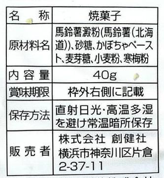 馬鈴薯澱粉(馬鈴薯(北海道))、砂糖、かぼちゃペースト、麦芽糖、小麦粉、寒梅粉