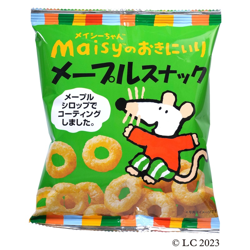 かわいいリング状のスナックにメープルシロップをコーティングしました。香料・着色料不使用。