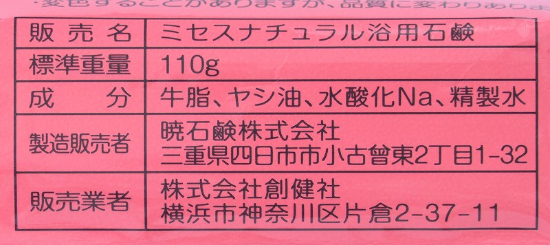 創健社 ミセスナチュラル 浴用石鹸 110g