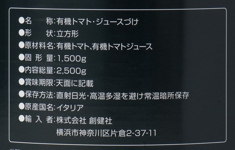 有機トマト(イタリア)、有機トマトジュース(イタリア)