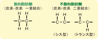 (1)植物油の加工(油を固化させる)をする際に水素添加を行うことによりシス型からトランス型に変化する。