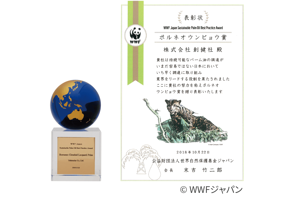 同会議においてWWF(世界自然保護基金)ジャパンより初の持続可能なパーム油の調達ベスト・プラクティスが発表され、当社は「ボルネオウンピョウ賞」を受賞いたしました。当社は2018年日本初のRSPO認証マーク付き食品「べに花ハイプラスマーガリン」・「発酵豆乳入りマーガリン」を販売し、ホームページやカタログを通じて、積極的に持続可能なパーム油の調達の意義をお客様へ伝えていることが評価されました。