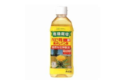 オレイン酸を豊富に含む(製品中約75%含有)品種のべに花の種子を使い、溶剤抽出をせずに圧搾法一番しぼりした、マイルドな食用油です。
