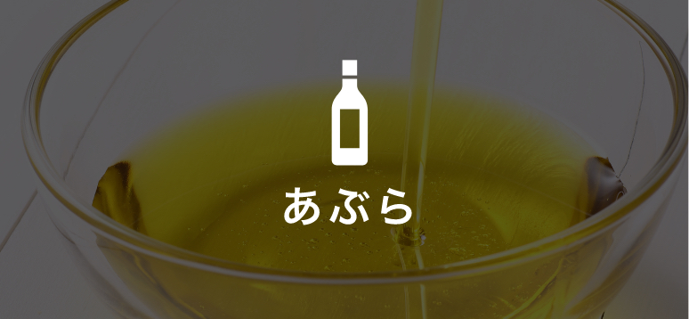 べに花油、オリーブオイル、えごま油、カメリナオイル 、菜種油、ごま油などです。