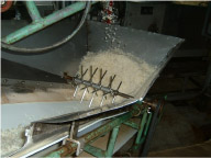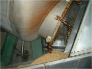 大豆は豆を研磨して、釜に入れ一昼夜浸ます。翌日、釜の水を落として、もう一度水を入れて蒸煮します。 今度は、釜の湯を落としてそのまま蒸す。 (15~20分)冷却して、出麹した米麹と食塩と混合していきます。