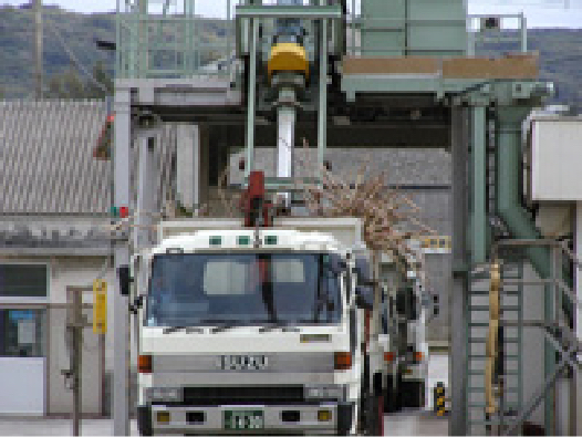 トラックにたくさんのサトウキビをのせて、工場へ運びます。