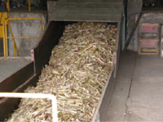 運ばれたサトウキビは、短くカットされ、ゴミを取り除きます。