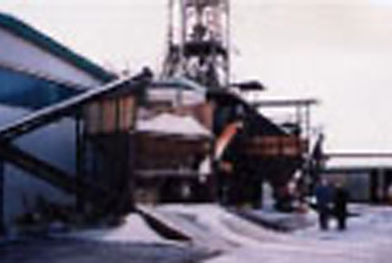 枯らした塩を洗浄し、粉砕した後に220℃の大型乾燥機で乾燥させます。 塩の工場への搬入口(写真上) 大型乾燥機(写真下)。